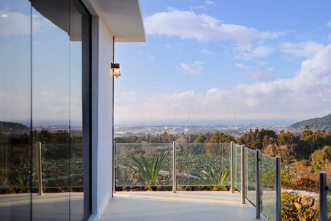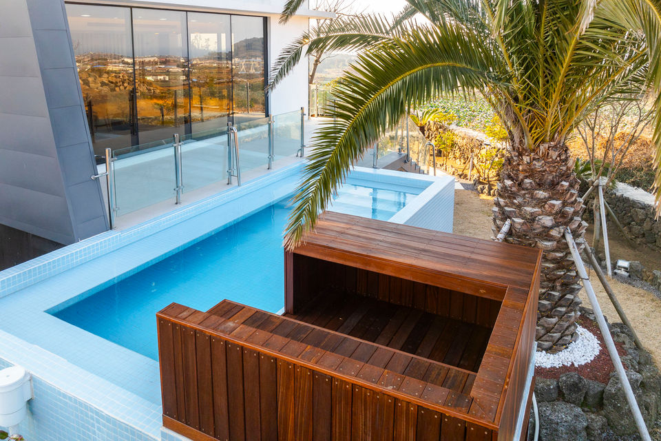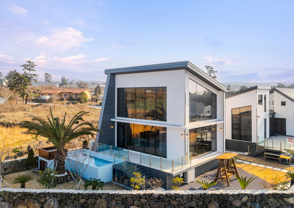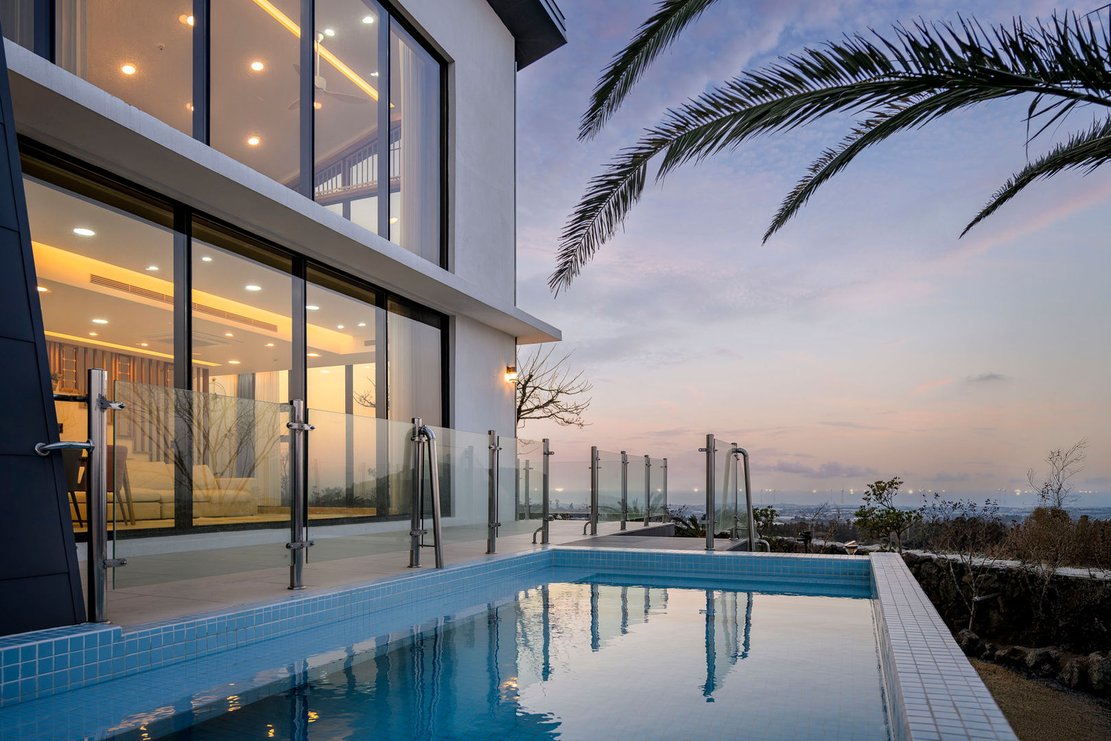 제주밤바다, 섬의 풍경을 오롯이 즐길 수 있는 비에니스타 풀빌라의 외부전경입니다.