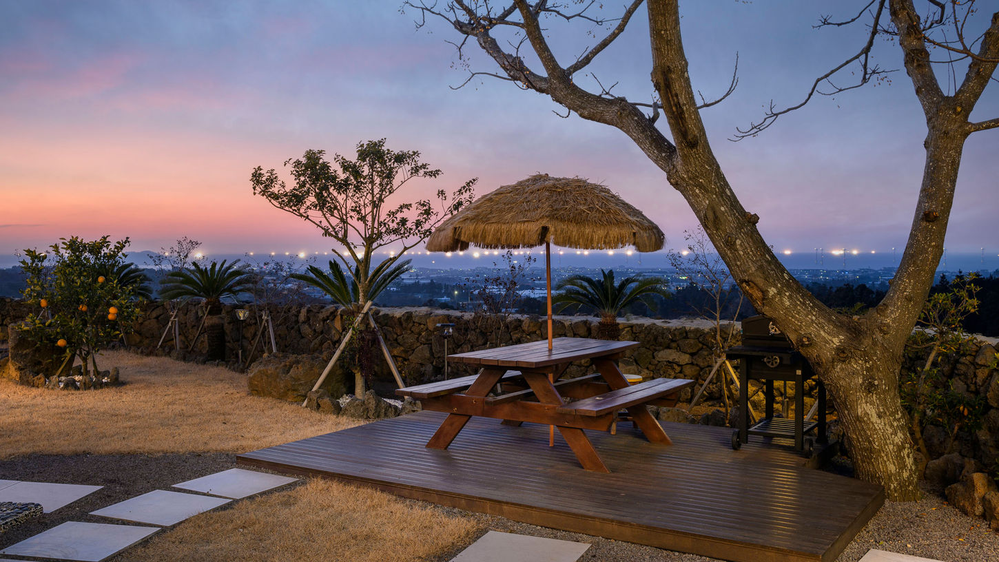 따뜻한 물속에 몸을 맡기면 잔잔한 바람이 스쳐 지나가고, 해 질 녘이면 황금빛 노을이 바다 위로 퍼져나갑니다. 오롯이 나를 위한 시간, 비에니스타 프라이빗 풀&가든 입니다.